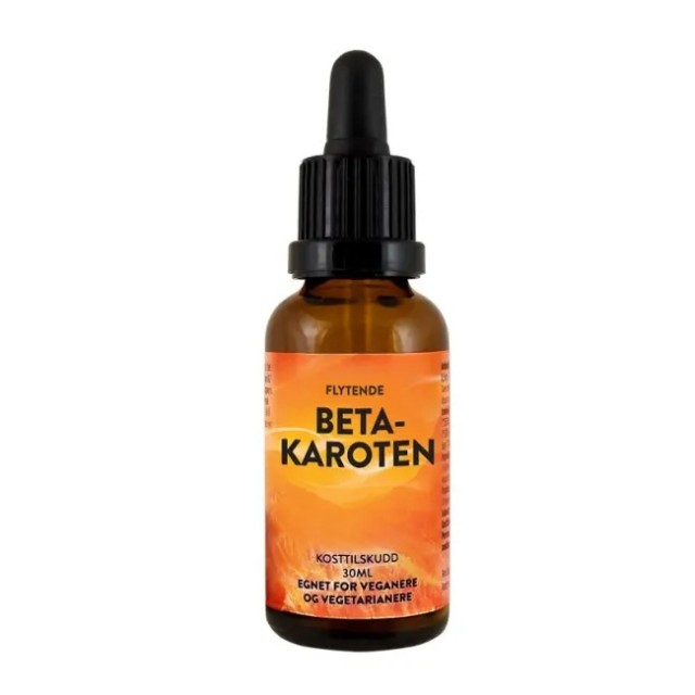 Flytende Betakaroten 30ml erstatter ikke solkrem, men Betakaroten kan bidra til en gyllen brunfarge om sommeren. Betakaroten bidrar til å forberede huden på soling.